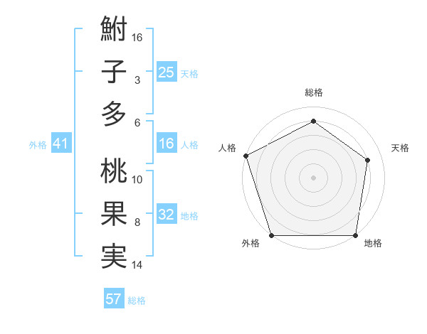 鮒子多 桃果実さんを姓名の画数から五運を鑑定