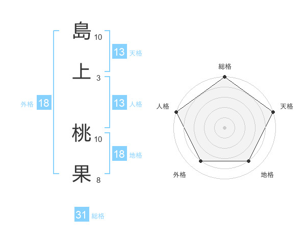 島上 桃果さんの総格は31画の5点!