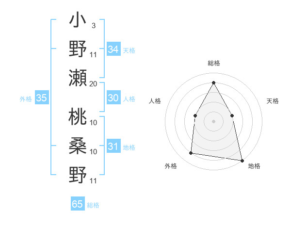 小野瀬 桃桑野さんの総格は65画の4点!