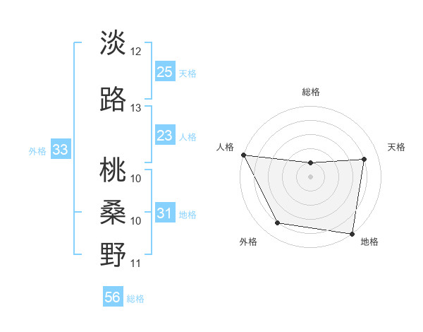 淡路 桃桑野さんを姓名の画数から五運を鑑定