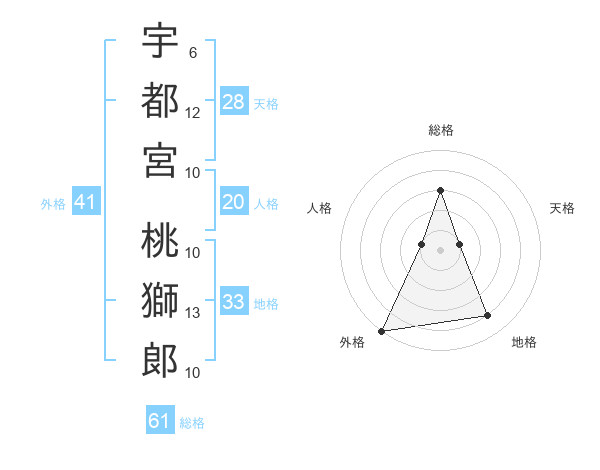 宇都宮 桃獅郞さんの総格は61画の3点!
