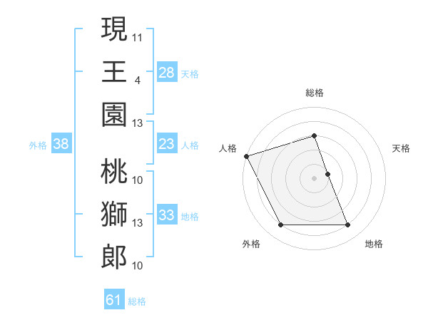 現王園 桃獅郞さんを姓名の画数から五運を鑑定