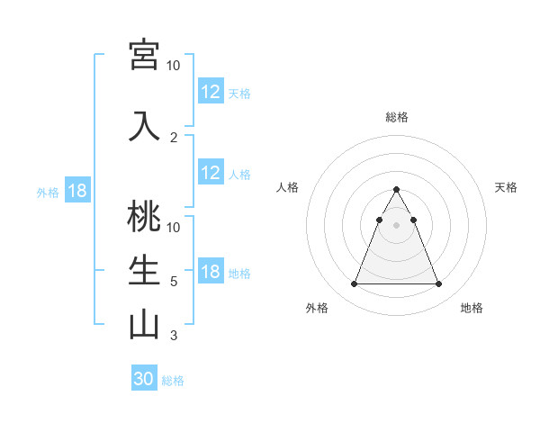 宮入 桃生山さんを姓名の画数から五運を鑑定