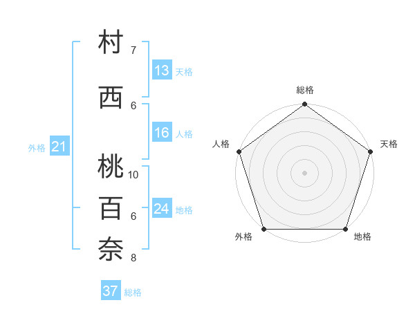 村西 桃百奈さんを姓名の画数から五運を鑑定