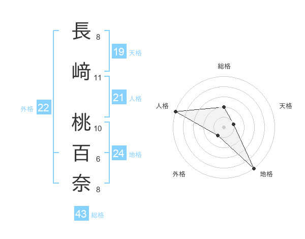 長﨑 桃百奈さんを姓名の画数から五運を鑑定