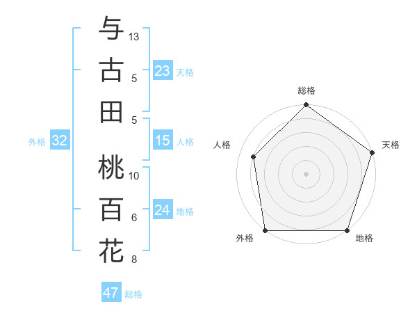 与古田 桃百花さんを姓名の画数から五運を鑑定