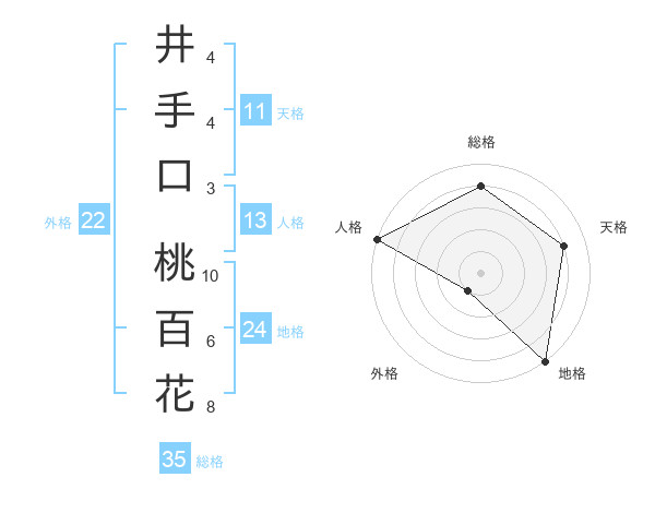 井手口 桃百花さんを姓名の画数から五運を鑑定
