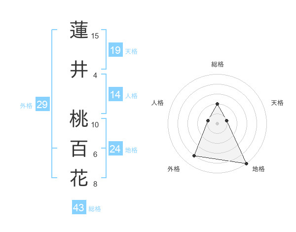 蓮井 桃百花さんを姓名の画数から五運を鑑定