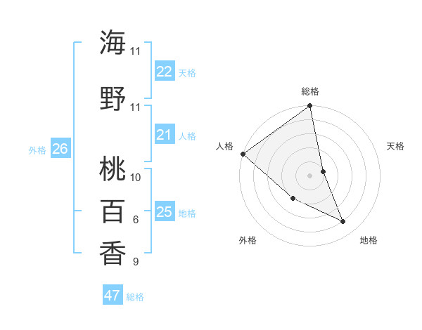海野 桃百香さんを姓名の画数から五運を鑑定