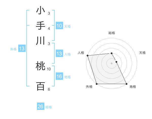 小手川 桃百さんを姓名の画数から五運を鑑定