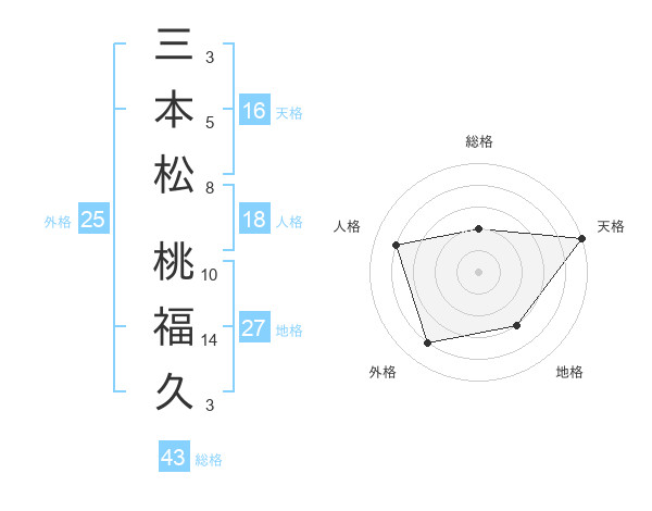 三本松 桃福久さんを姓名の画数から五運を鑑定