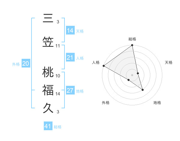 三笠 桃福久さんを姓名の画数から五運を鑑定