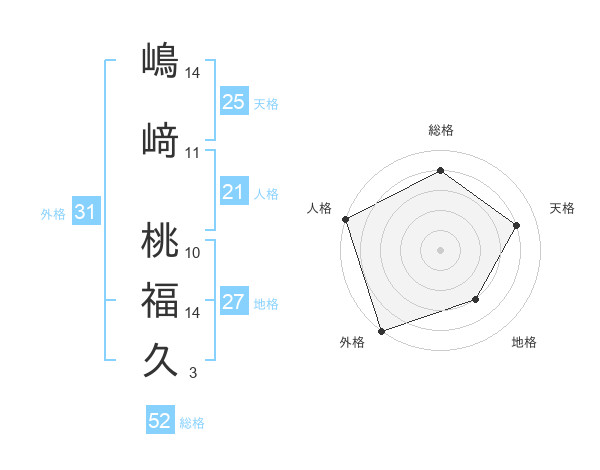嶋﨑 桃福久さんを姓名の画数から五運を鑑定