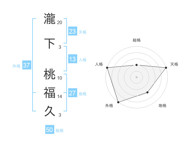 瀧下 桃福久さんを姓名の画数から五運を鑑定
