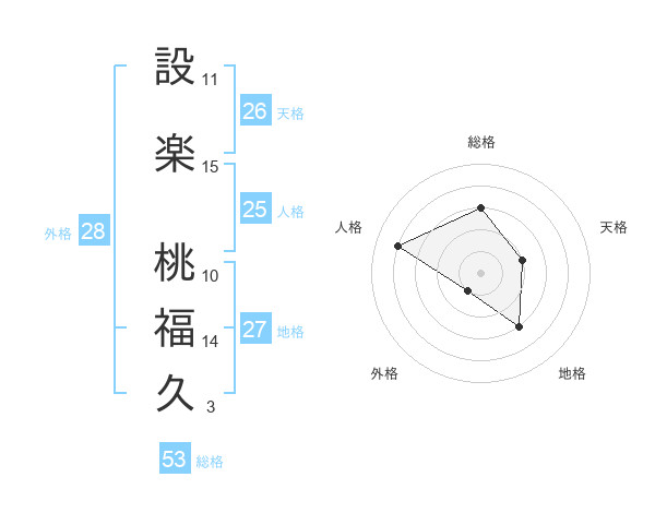 設楽 桃福久さんを姓名の画数から五運を鑑定