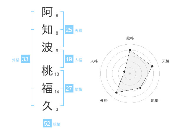 阿知波 桃福久さんを姓名の画数から五運を鑑定