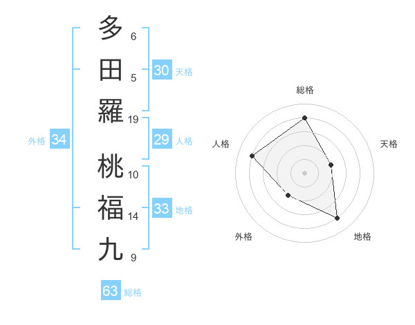 多田羅 桃福九さんを姓名の画数から五運を鑑定