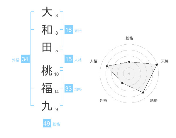 大和田 桃福九さんを姓名の画数から五運を鑑定