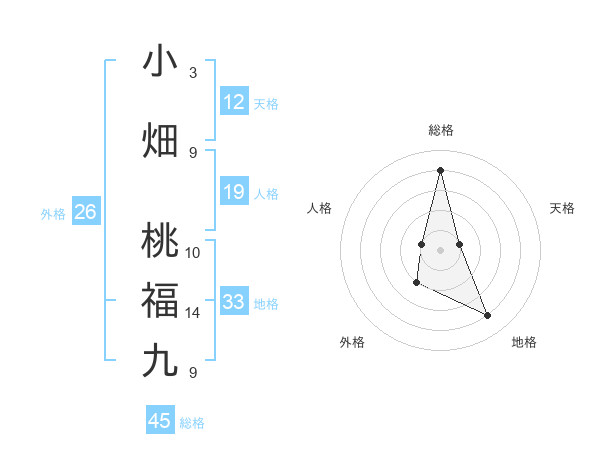小畑 桃福九さんを姓名の画数から五運を鑑定