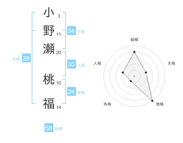 小野瀬 桃福さんを姓名の画数から五運を鑑定