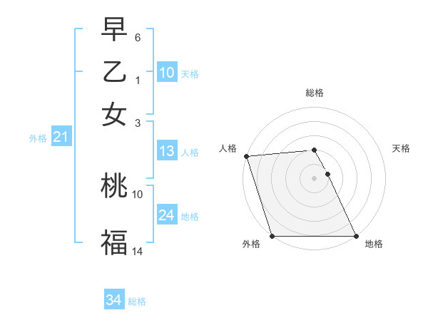 早乙女 桃福さんを姓名の画数から五運を鑑定