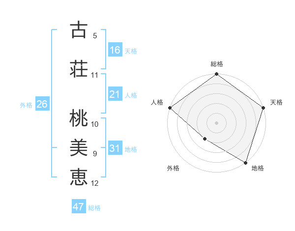 古荘 桃美恵さんを姓名の画数から五運を鑑定