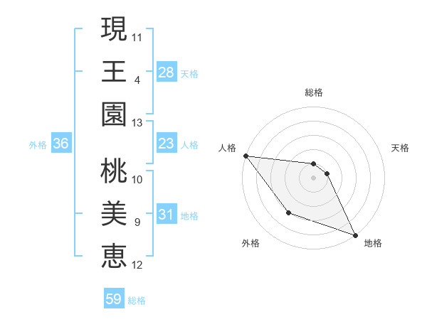 現王園 桃美恵さんを姓名の画数から五運を鑑定