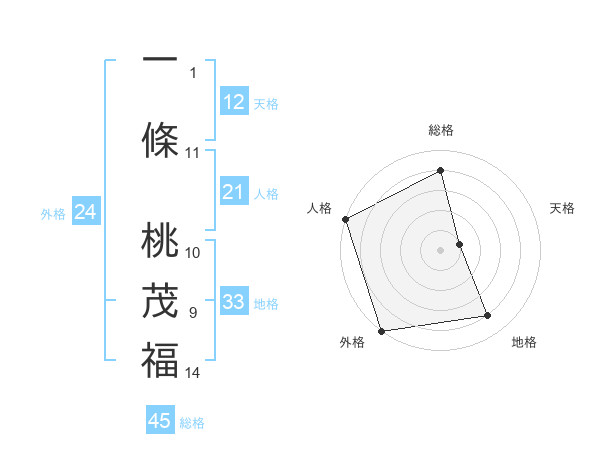 一條 桃茂福さんを姓名の画数から五運を鑑定