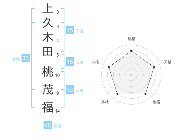 上久木田 桃茂福さんを姓名の画数から五運を鑑定