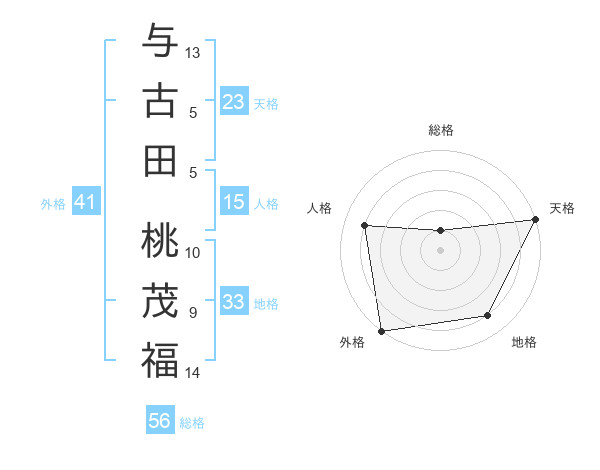 与古田 桃茂福さんの天格は23画の5点
