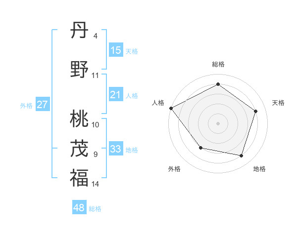 丹野 桃茂福さんを姓名の画数から五運を鑑定
