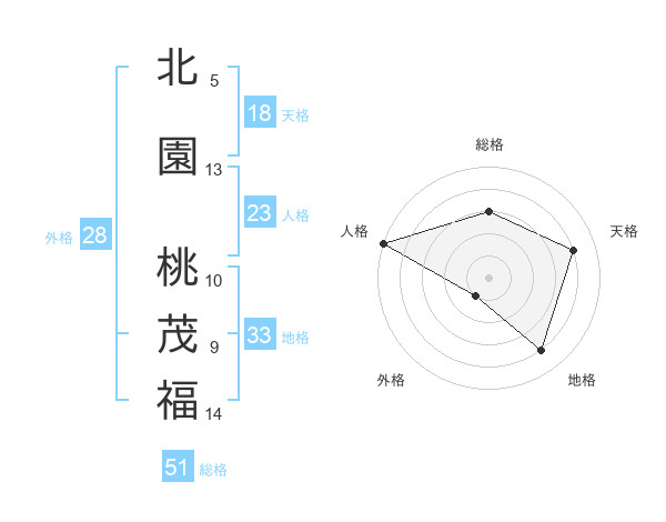 北園 桃茂福さんを姓名の画数から五運を鑑定