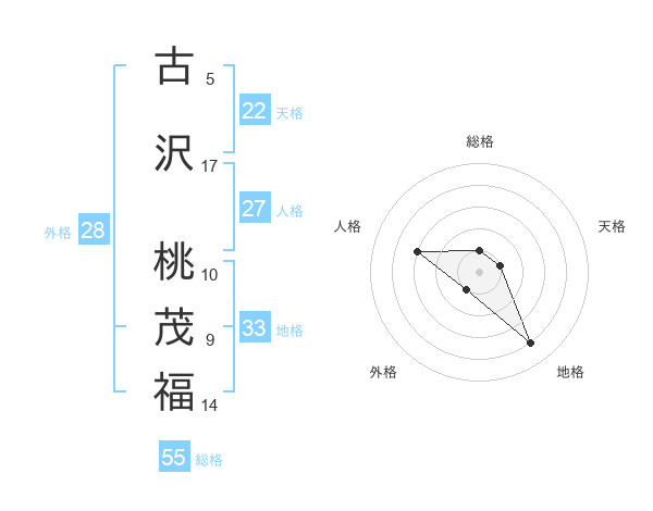 古沢 桃茂福さんを姓名の画数から五運を鑑定