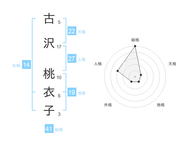 古沢 桃衣子さんを姓名の画数から五運を鑑定