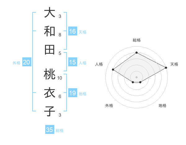 大和田 桃衣子さんの天格は16画の5点