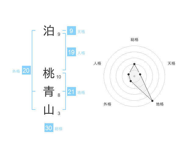 泊 桃青山さんの総格は30画の2点