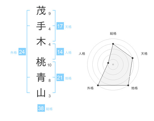 茂手木 桃青山さんを姓名の画数から五運を鑑定