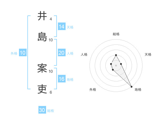 井島 案吏さんの総格は30画の2点!