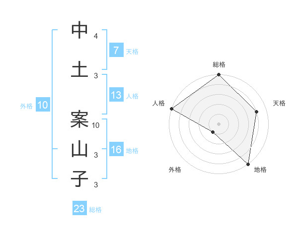 中土 案山子さんの総格は23画の5点!