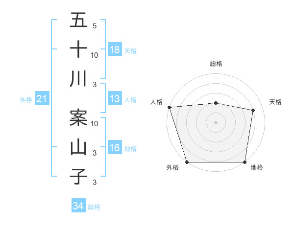 五十川 案山子さんを姓名の画数から五運を鑑定