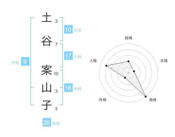 土谷 案山子さんを姓名の画数から五運を鑑定