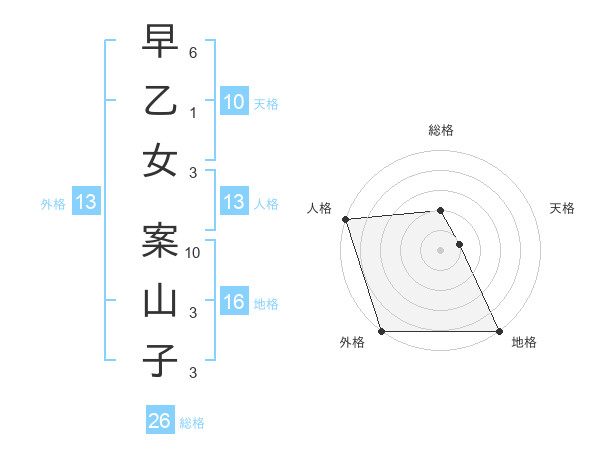 早乙女 案山子さんを姓名の画数から五運を鑑定