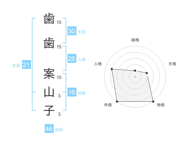 歯歯 案山子さんの外格は21画の5点!