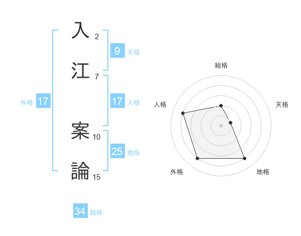 入江 案論さんの外格は17画の4点!