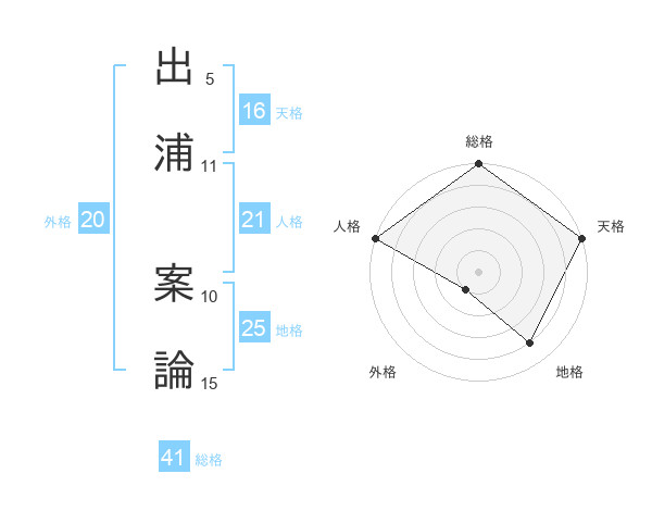 出浦 案論さんの人格は21画の5点!