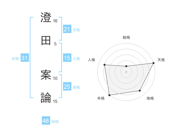 澄田 案論さんの天格は21画の5点!