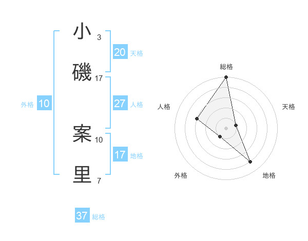 小磯 案里さんの天格は20画の1点!
