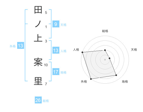 田ノ上 案里さんを姓名の画数から五運を鑑定