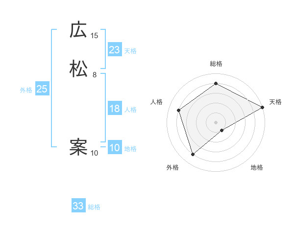 広松 案さんの天格は23画の5点!