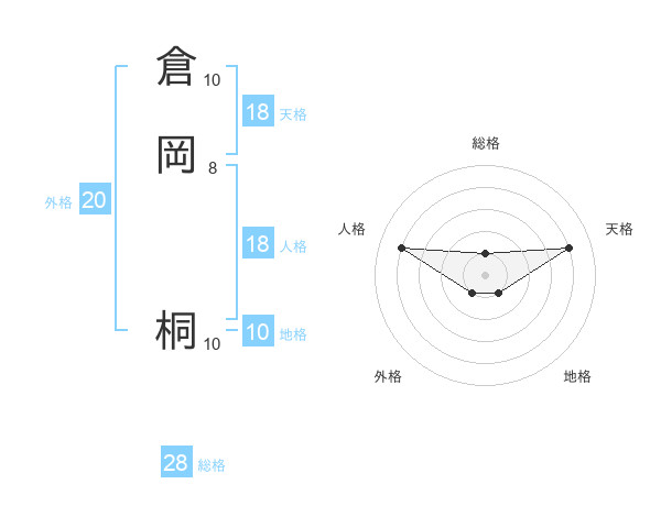 倉岡 桐さんを姓名の画数から五運を鑑定